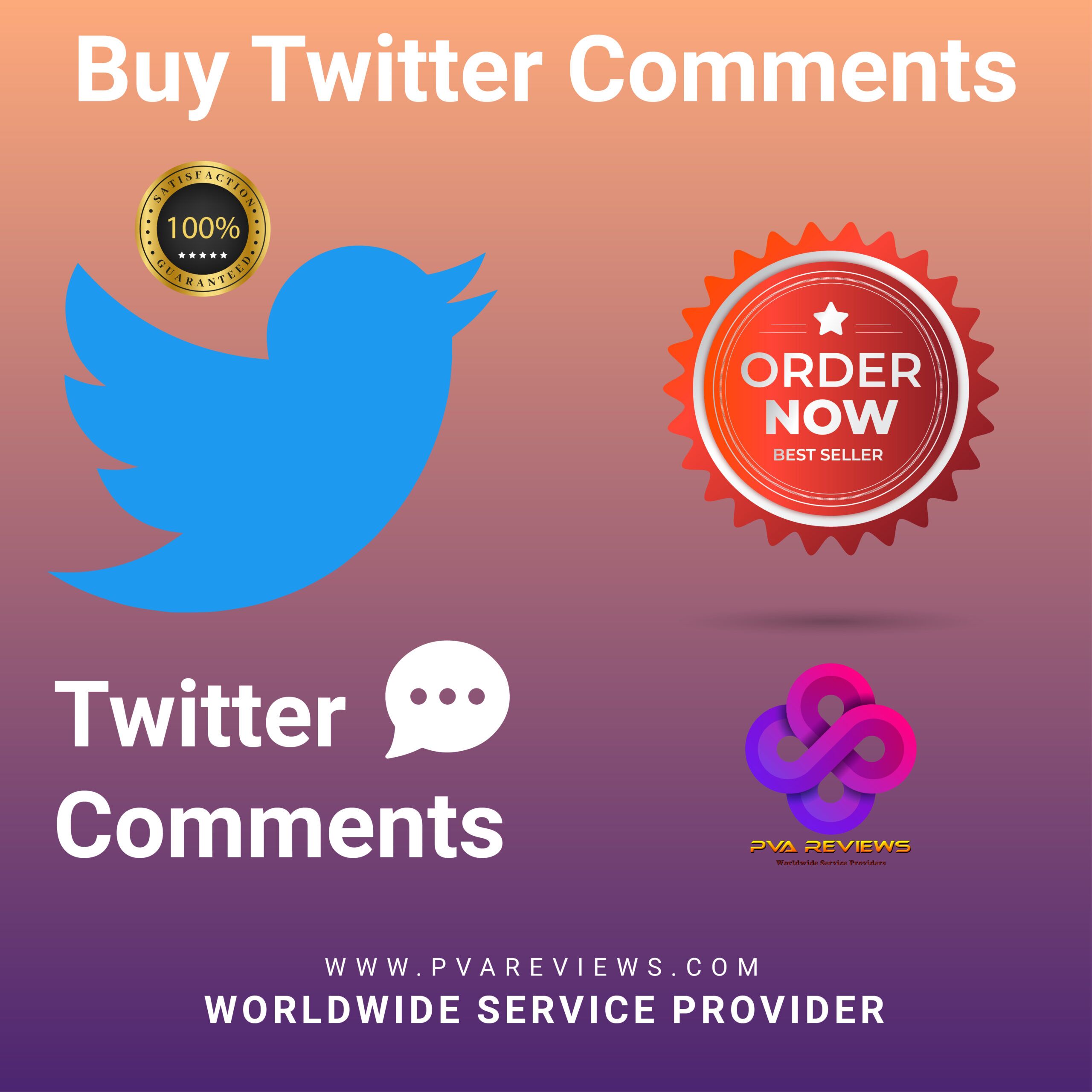 Twitter Comments | 100 Twitter Comments Only $45, 1000 Twitter Comments Only $410, 20 Twitter Comments Only $10, 50 Twitter Comments Only $24, 500 Twitter Comments Only $210 |